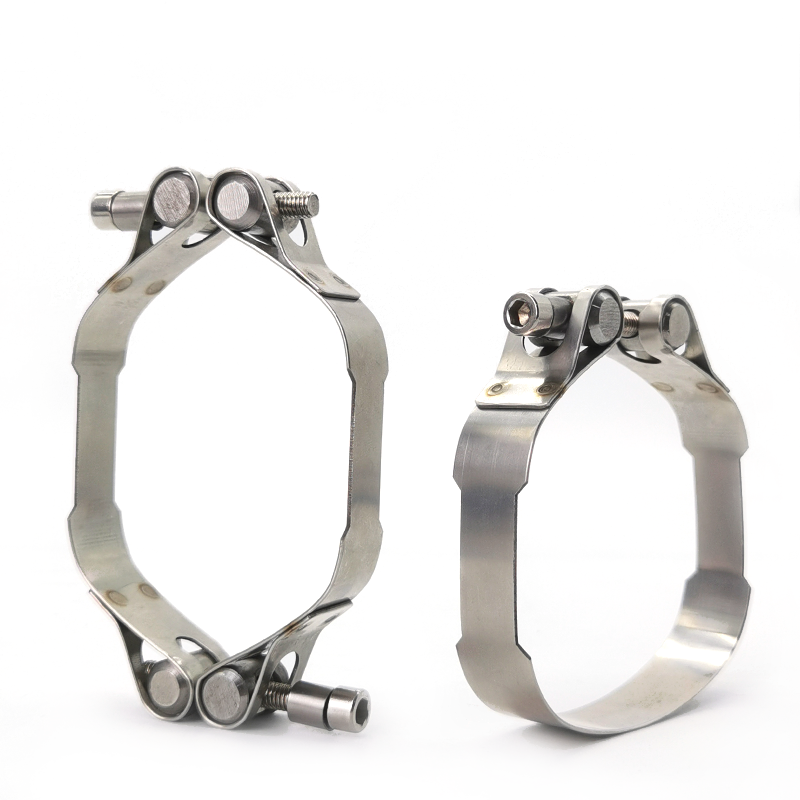De plus, la conception de la pince comprend une configuration d'oreille entre verrouillage unique qui maintient la force de serrage même en vibration. Cela les rend adaptés non seulement aux applications automobiles, mais aussi aux systèmes d'échappement des générateurs, aux équipements agricoles et aux machines lourdes. Les boulons sont généralement de type HEX HEAD ou Allen, et peuvent être éventuellement remplacés par des conceptions de sabot pour une sécurité supplémentaire.
